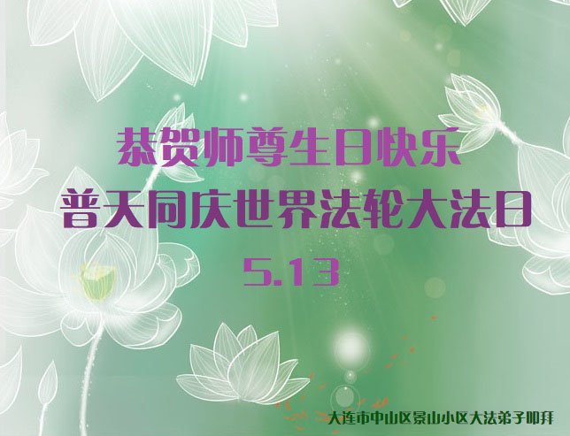 辽宁省大连市中山区景山小区大法弟子恭祝师尊生日快乐!