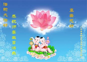 大法洪传天地晴 师尊生日全球庆 真善忍存世人信 法轮大法救众民 广东湛江市一老年大法弟子恭祝师尊华诞!恭贺世界法轮大法日!