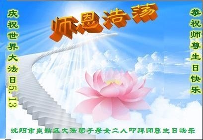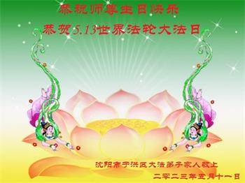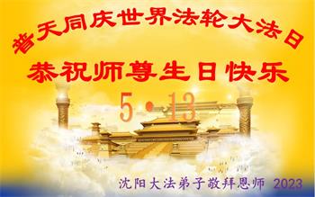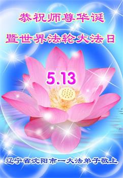 庆祝5.13世界法轮大法日! 辽宁沈阳市大法弟子恭贺世界法轮大法日暨师尊华诞!