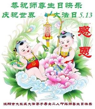 庆祝5.13世界法轮大法日! 辽宁沈阳大东区母女大法弟子恭祝师尊生日快乐!