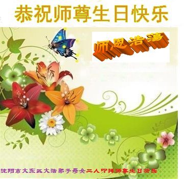 辽宁沈阳大东区母女大法弟子恭祝师尊生日快乐!