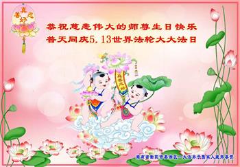 我们夫妻俩人坚信师父,坚信大法,坚修大法到底。做好三件事,修去执着,放下人心,精進、再精進! 湖南新学员及全家恭祝慈悲伟大的师父生日快乐!普天同庆五·一三世界法轮大法日!