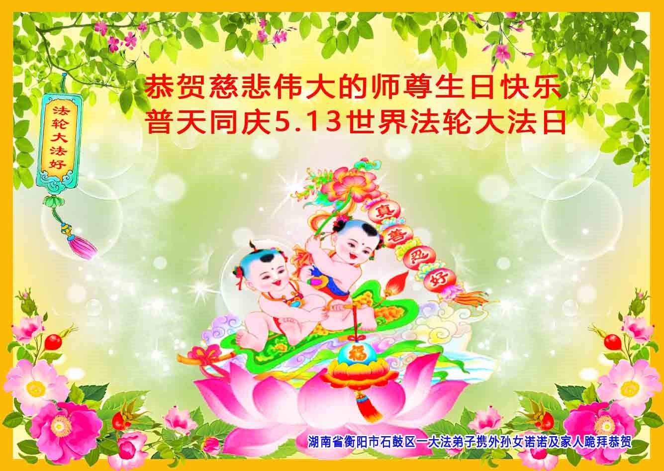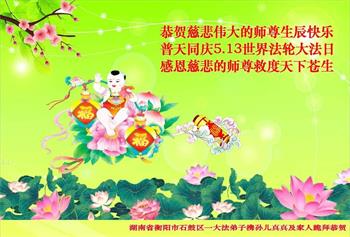 湖南省衡阳市蒸湘区一大法弟子携家人跪拜:恭祝慈悲伟大的师尊生日快乐!普天同庆5.13世界法轮大法日! 湖南省衡阳市石鼓区大法弟子们恭贺世界法轮大法日!