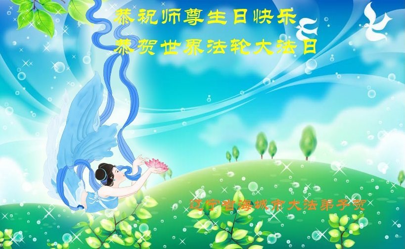 普天同庆世界法轮大法日!恭祝师尊生日快乐!师尊您辛苦了! 辽宁阜新市大法弟子恭祝师尊生日快乐!
