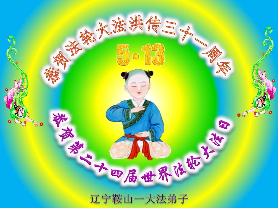 普天同庆5·13世界法轮大法日! 在这最后的时间里,弟子要修好自己,多救人,跟师父回家。 辽宁省营口盖州市一大法弟子恭祝伟大慈悲师父生日快乐!