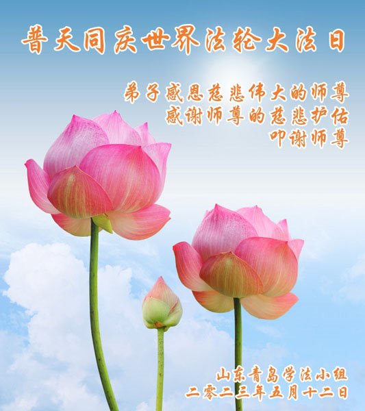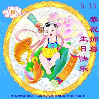 山东青岛一学法小组大法弟子恭祝师尊生日快乐!敬贺世界法轮大法日!
