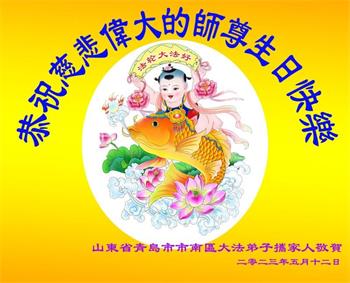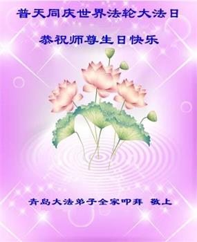 山东青岛大法弟子恭祝师父生日快乐!恭贺世界法轮大法日!