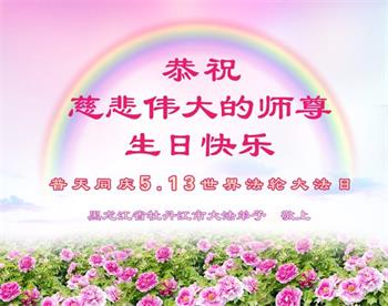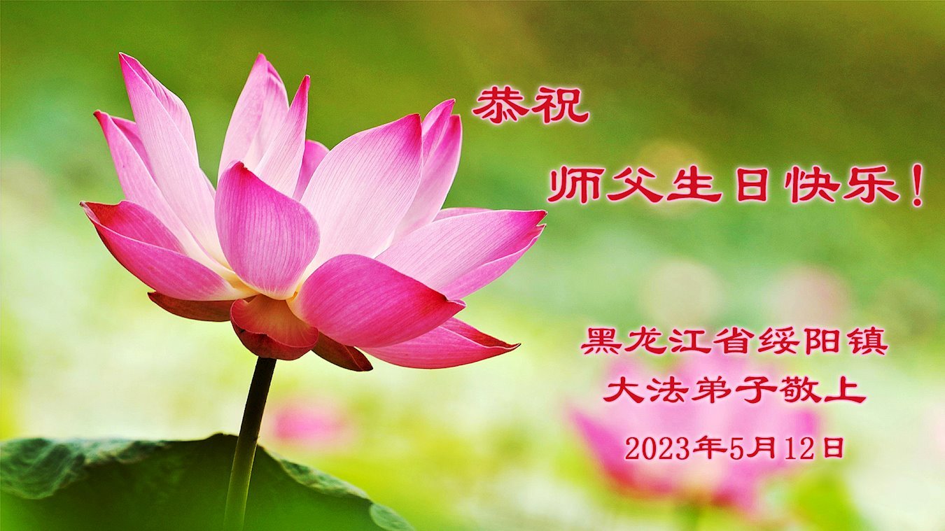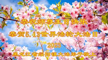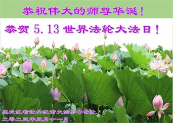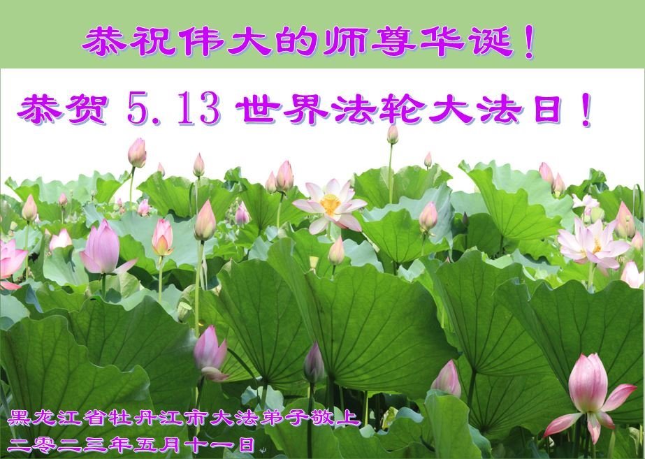 【明慧网二零二三年五月十四日】 黑龙江省牡丹江市大法弟子恭祝慈悲伟大的师尊生日快乐!同庆世界法轮大法日!