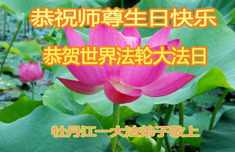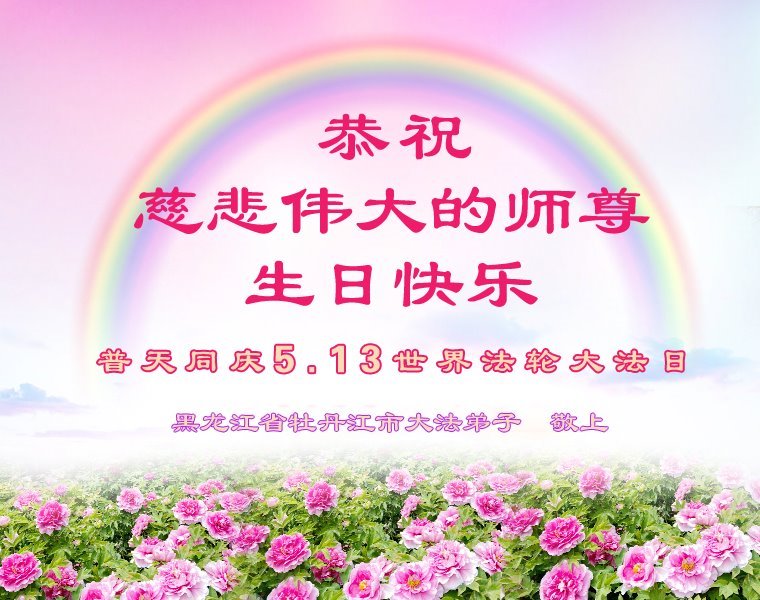 黑龙江省牡丹江大法弟子恭祝师尊华诞!恭贺世界法轮大法日!