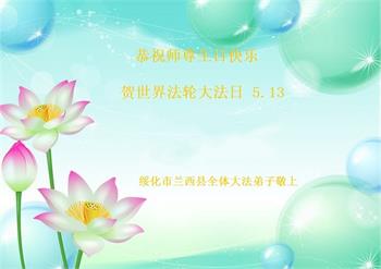 黑龙江省绥化市望奎县全体大法弟子恭贺世界法轮大法日!恭祝师尊生日快乐!