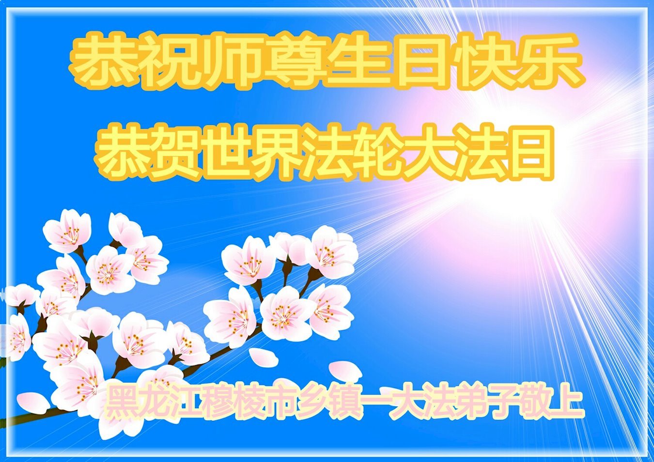 黑龙江省绥阳镇大法弟子恭祝师尊生日快乐!恭贺世界法轮大法日!