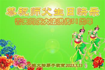 【明慧网二零二三年五月十四日】 辽宁省大连市泡崖八区学法小组大法弟子恭祝师尊生日快乐!