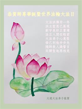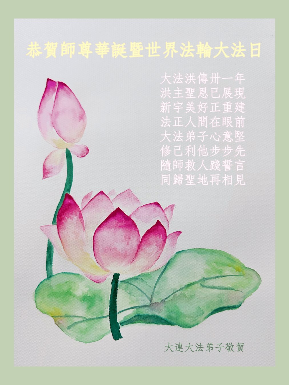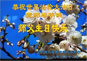 辽宁省大连市一大法弟子恭贺法轮大法日!恭祝师尊生日快乐!