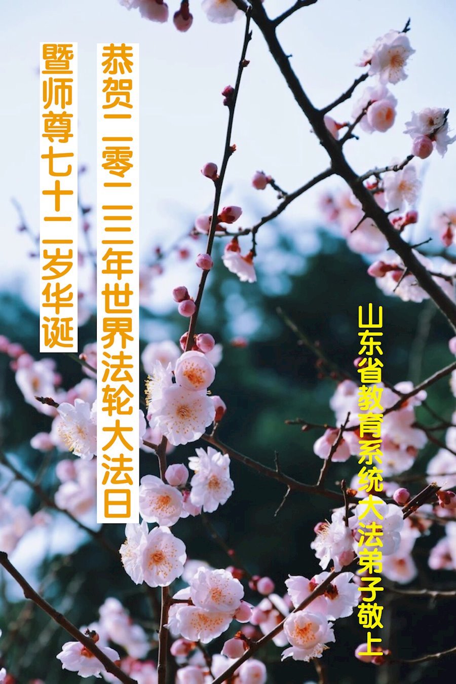 恭贺世界法轮大法日! 山东省教育系统大法弟子恭贺世界法轮大法日暨师尊七十二华诞!