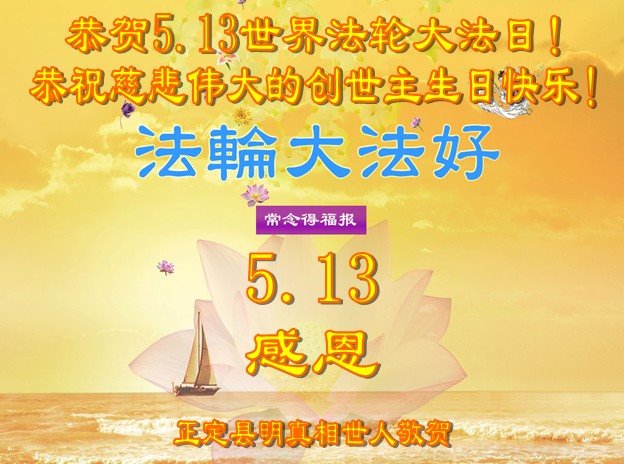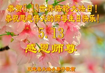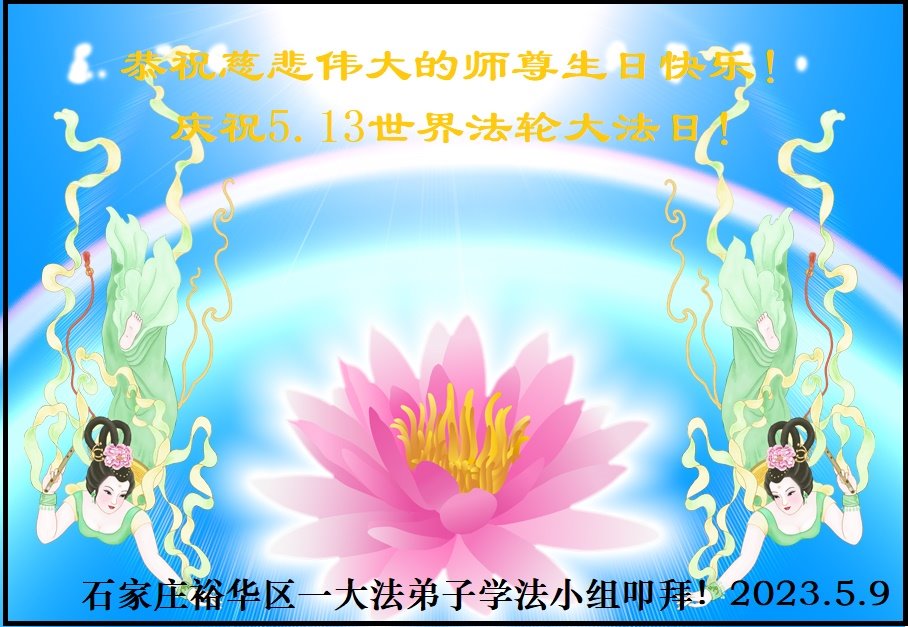 【明慧网二零二三年五月十四日】 河北省石家庄市正定县大法小弟子恭贺世界法轮大法日!