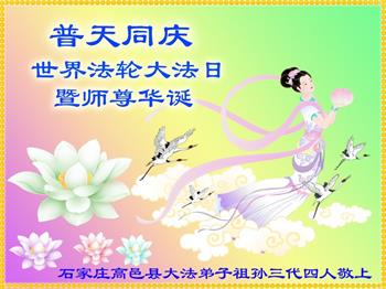 河北石家庄市高邑县大法弟子家属恭贺世界法轮大法日暨师尊华诞!