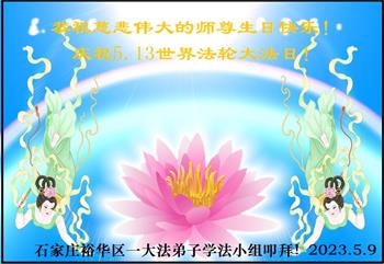 河北省石家庄市裕华区一学法小组全体大法弟子恭贺世界法轮大法日暨师尊华诞!
