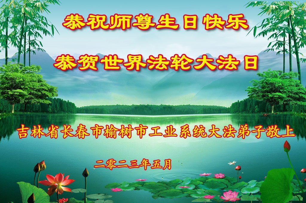 【明慧网二零二三年五月十四日】 吉林省长春榆树市工业系统大法弟子恭祝师尊生日快乐!恭贺世界法轮大法日!