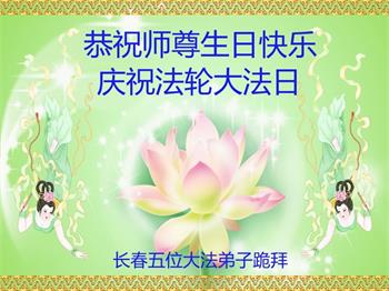 吉林省长春市临河街一学法小组大法弟子恭祝师父生日快乐!恭贺世界法轮大法日!