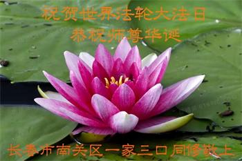 长春市南关区一公司全体员工合十 吉林省长春市南关区一家三口恭祝慈悲伟大的师尊生日快乐暨世界法轮大法日!