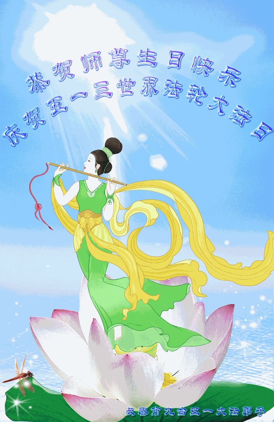 弟子要牢记师尊的教诲,提高心性,修好自己,做一个合格的大法弟子。 吉林省长春市九台区一大法弟子恭祝师尊华诞!恭贺世界法轮大法日!