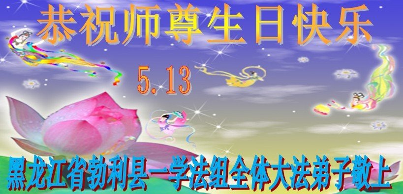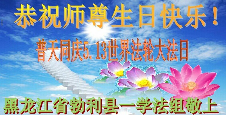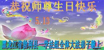 黑龙江省七台河市勃利县一学法小组全体大法弟子恭祝慈悲伟大的师尊生日快乐!普天同庆5.13世界法轮大法日!