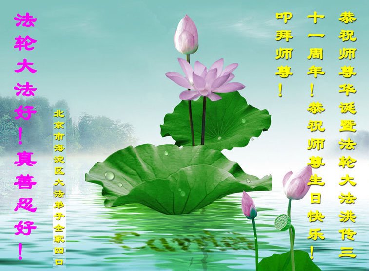 北京海淀区大法弟子全家恭祝师尊生日快乐暨法轮大法日!!