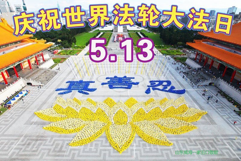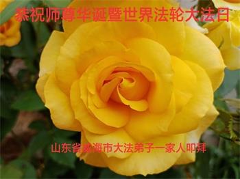 山东威海市大法弟子一家人恭贺世界法轮大法日!