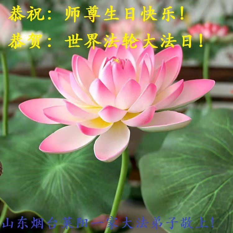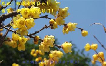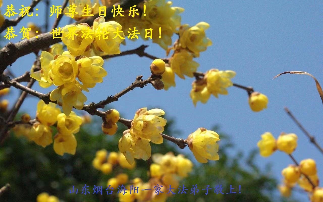 师尊您好!您辛苦了!山东烟台海阳一家大法弟子恭祝师尊生日快乐!恭贺世界法轮大法日日! 山东省淄博市大法弟子恭祝师尊生日快乐!同祝世界法轮大法日!