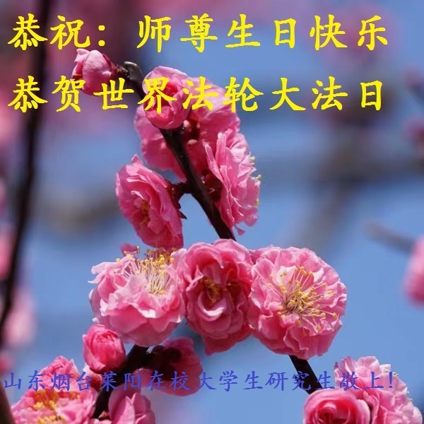 师尊您好!您辛苦了!山东烟台莱阳在校大学生、研究生大法弟子三人恭祝师尊生日快乐!恭贺世界法轮大法日! 山东烟台海阳在校大学生恭祝师尊生日快乐!恭贺世界法轮大法日! 山东省烟台市龙口市一大法弟子恭祝师尊生日快乐!恭贺世界法轮大法日!