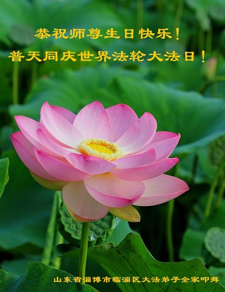 山东省淄博市临淄区大法弟子全家恭贺师尊华诞暨世界法轮大法日!