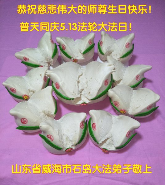 5月13日是师父的生日,又是世界法轮大法日。在这普天同庆的节日,向慈悲伟大的师尊说声:谢谢师父慈悲救度,弟子一定要修好自己,多救人,跟师父圆满回家。 大陆山东省烟台一大法弟子恭祝师父生日快乐!恭贺法轮大法洪传世界三十一周年!庆祝“五·一三”世界法轮大法日!