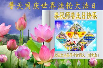 大陆大法弟子恭祝慈悲伟大的师尊生日快乐!