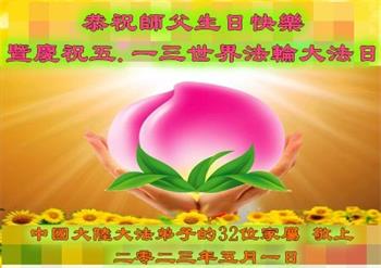 中国大陆大法弟子家属共32人恭祝师父生日快乐!