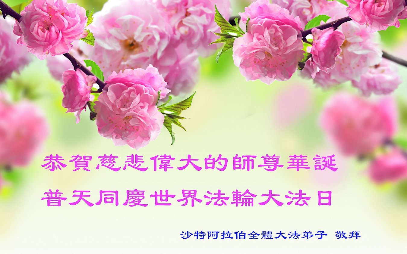 沙特大法弟子恭祝师尊生日快乐!恭贺世界法轮大法日!感恩师尊慈悲苦度!