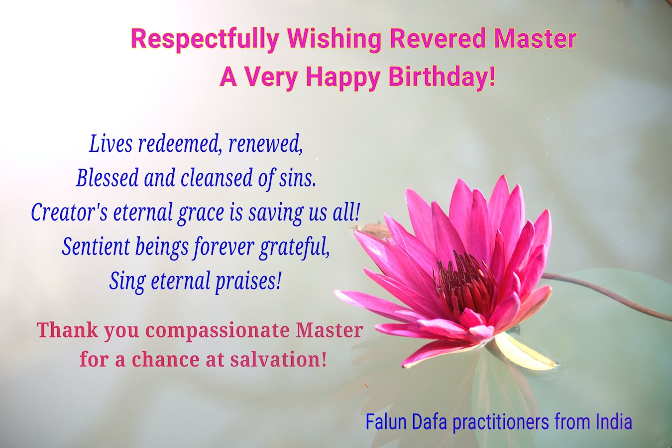 印度一名大法弟子恭祝师父生日快乐!祝贺世界法轮大法日!