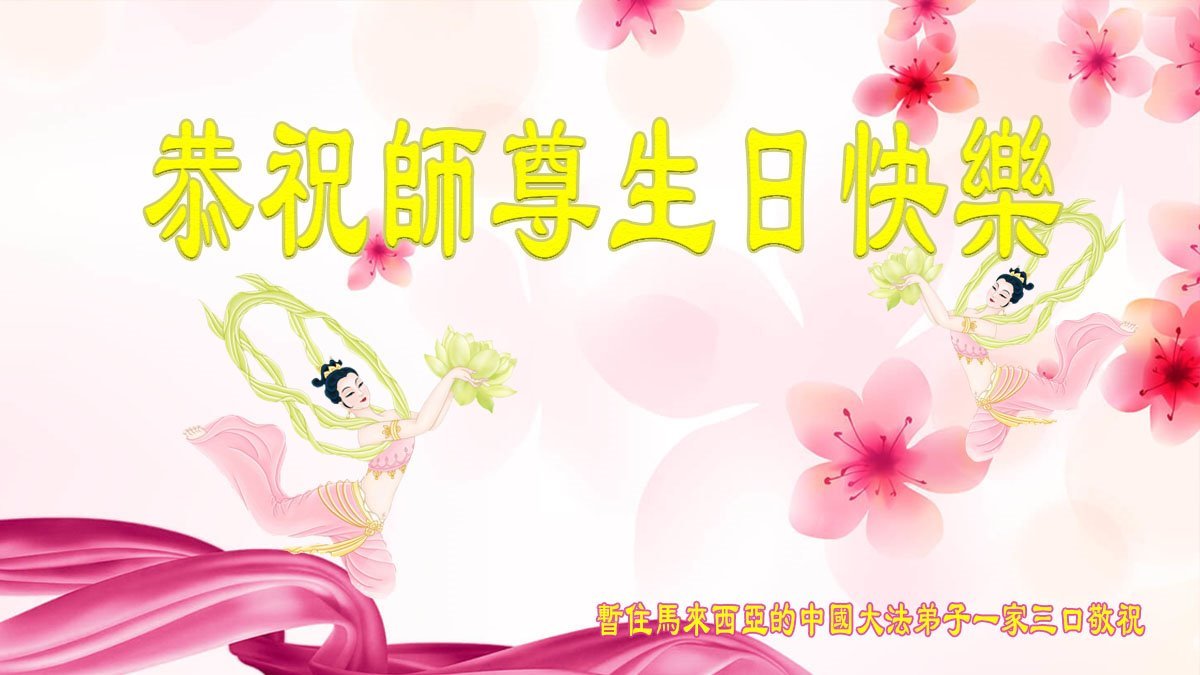 我是来自印度,是我所在的地区唯一的法轮功学员。一个人修炼的道路不是很容易,但我感到慈悲的师父就在我的身边,保护和指导着我。我知道我的心性仍有很多要提高的地方,还有许多的誓愿没有完成。我决心在未来的道路上做得更好。 我是我所在地区唯一的学员,我来自印度。它没有一个人修炼的好路子,但我总觉的我们师尊总是在我身边,慈悲地保护和引导我。我感到我的心性有很多要提高的地方,还有很多的愿要兑现。我决心在未来的道路上做得更好。 在慈悲伟大的师父七十二岁暨世界法轮大法日这样美好的日子,我送上深深的祝贺。 暂住马来西亚的中国大法弟子一家三口恭祝慈悲伟大的师尊生日快乐!