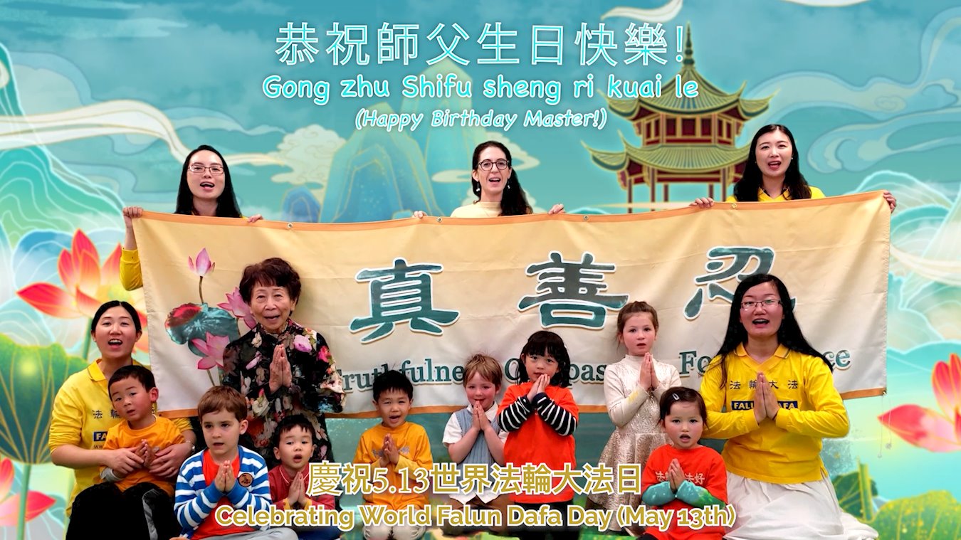法轮大法好!真、善、忍好! 美国纽约大法弟子及全家恭贺世界法轮大法日!