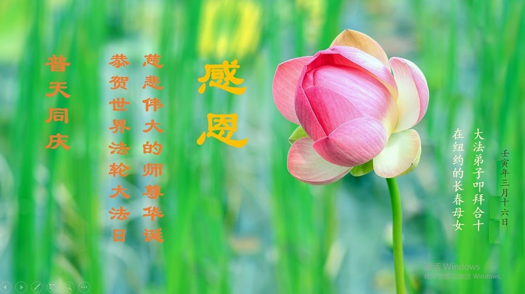 恭祝慈悲伟大的师父生日快乐!弟子感恩师父的慈悲救度! 美国纽约橙县母女大法弟子恭祝师尊生日快乐!