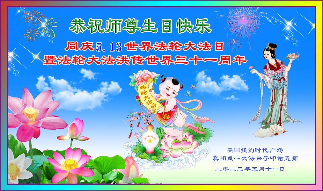 【明慧网二零二三年五月十四日】 美国纽约全体大法弟子恭祝师尊华诞快乐!