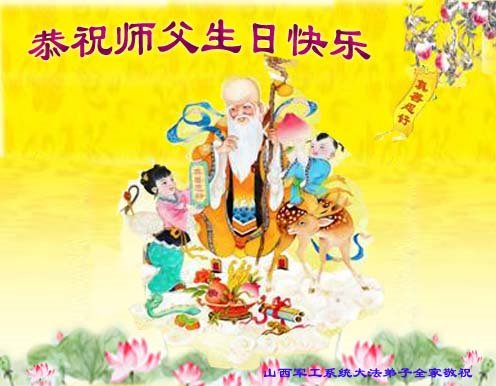 山西国防系统大法弟子全家恭祝慈悲伟大师父生日快乐!