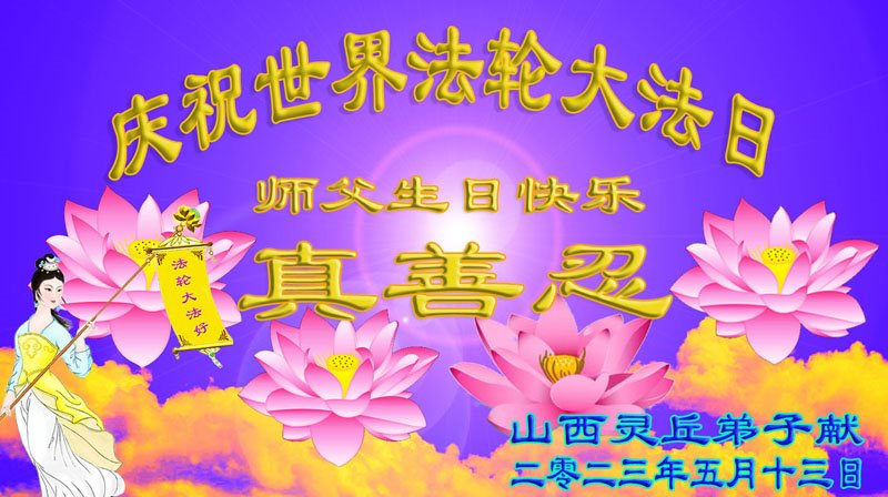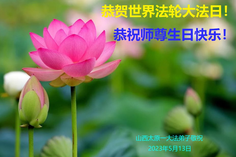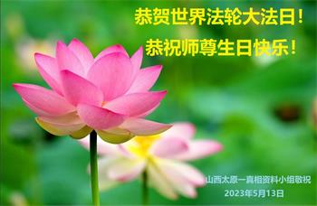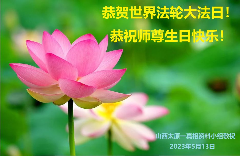 【明慧网二零二三年五月十五日】 山西省大同市浑源县全体大法弟子恭祝师尊生日快乐!恭贺世界法轮大法日!