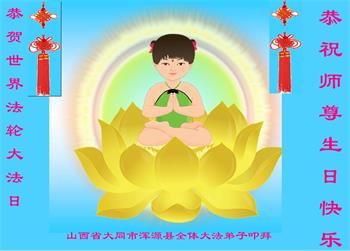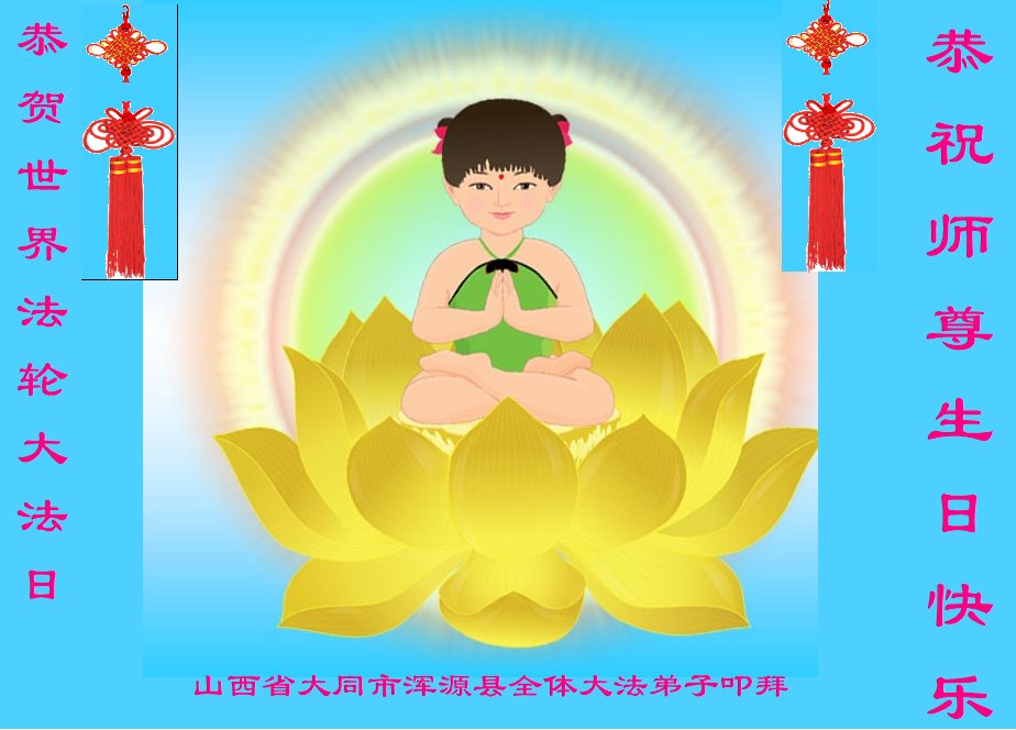 恭祝慈悲伟大师父生日快乐!普天同庆世界法轮大法日! 山西国防系统大法弟子全家敬祝 山西朔州大法弟子敬贺法轮大法日!