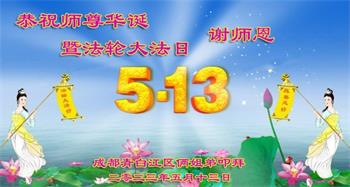 四川省成都市一大法弟子恭祝师尊生日快乐!恭贺世界法轮大法日!