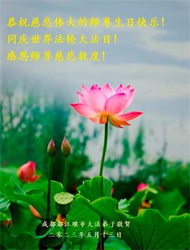 四川省成都市一大法弟子恭祝慈悲伟大的师尊生日快乐!恭贺世界法轮大法日!