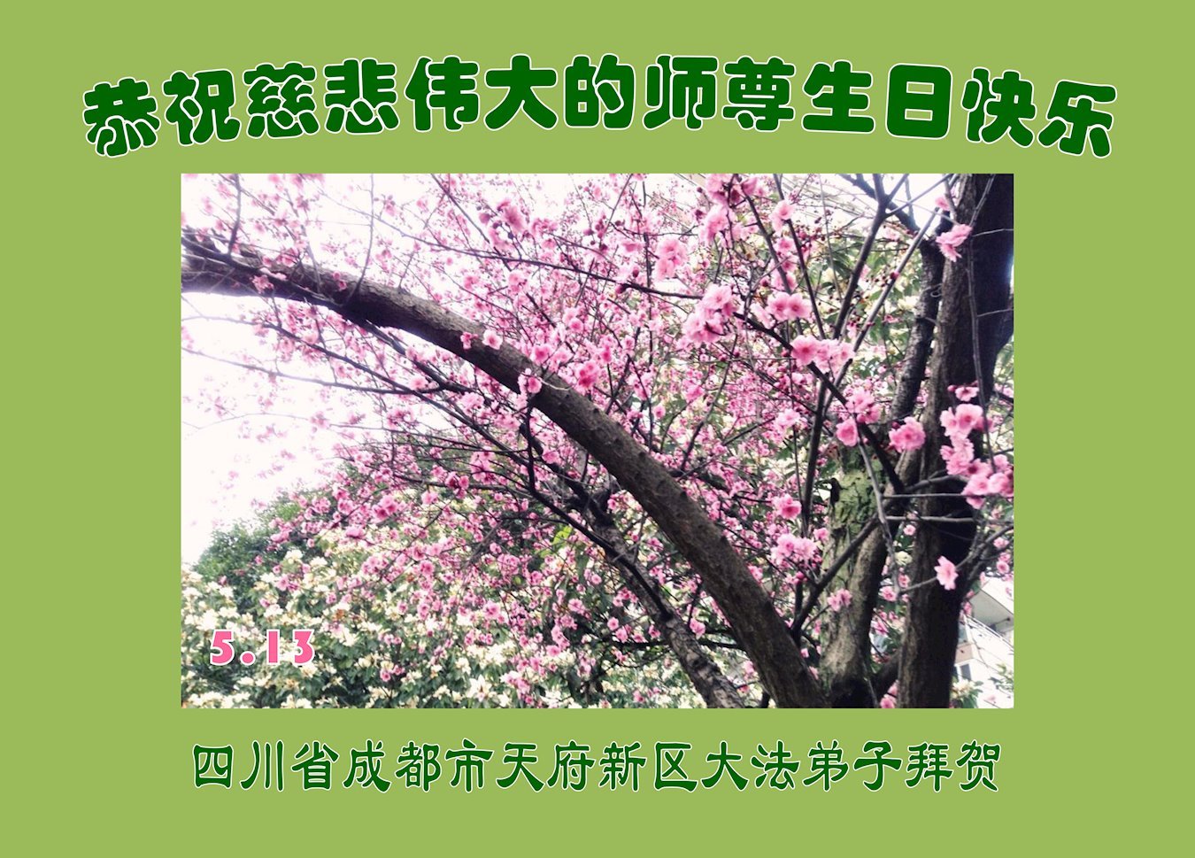 大法弟子恭祝慈悲伟大的师尊华诞!敬祝世界法轮大法日!恭贺法轮大法传世三十一周年! 四川省成都市天府新区大法弟子恭祝师尊生日快乐!