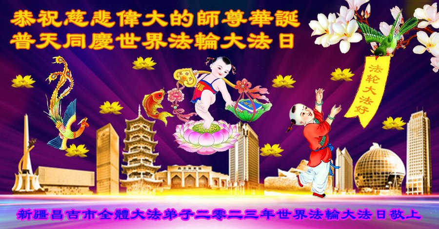 新疆昌吉州全体大法弟子恭祝伟大的师尊华诞快乐!普天同庆世界法轮大法日!