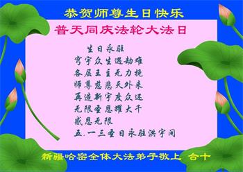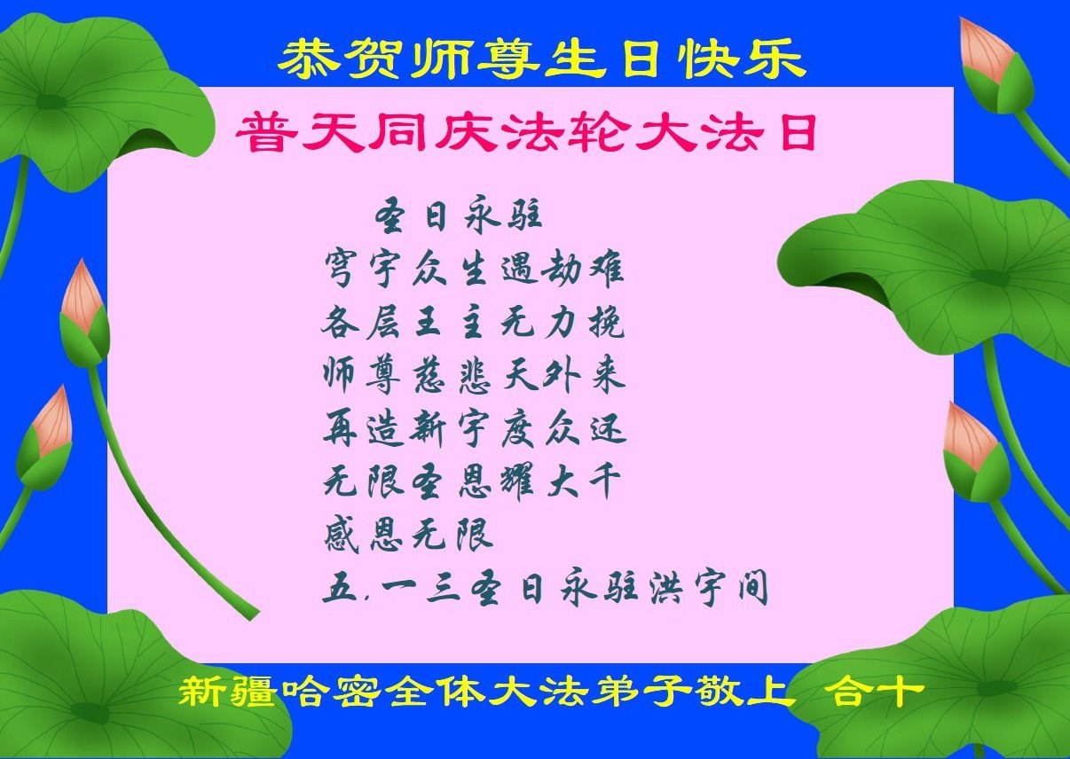 新疆哈密全体大法弟子恭贺世界法轮大法日及师尊生日快乐!
