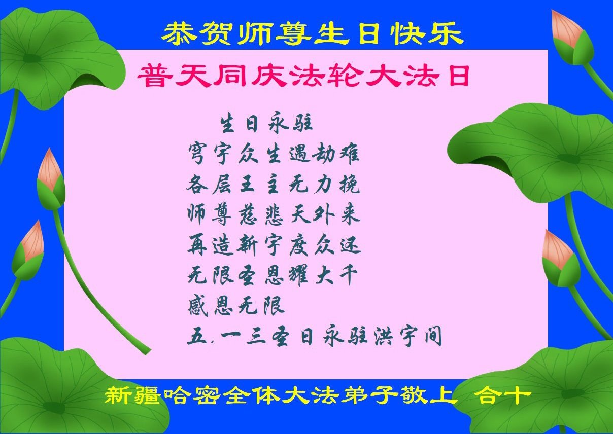 【明慧网二零二三年五月十五日】 新疆大法乌鲁木齐大法弟子恭祝师尊生日快乐!