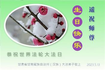 【明慧网二零二三年五月十五日】 甘肃省兰州市大法弟子恭祝师父生日快乐!